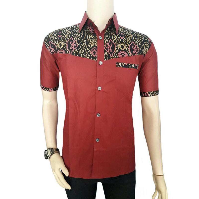 Jual Baju Batik Atasan Pria Hem Batik Lengan Pendek Kombinasi Kain
