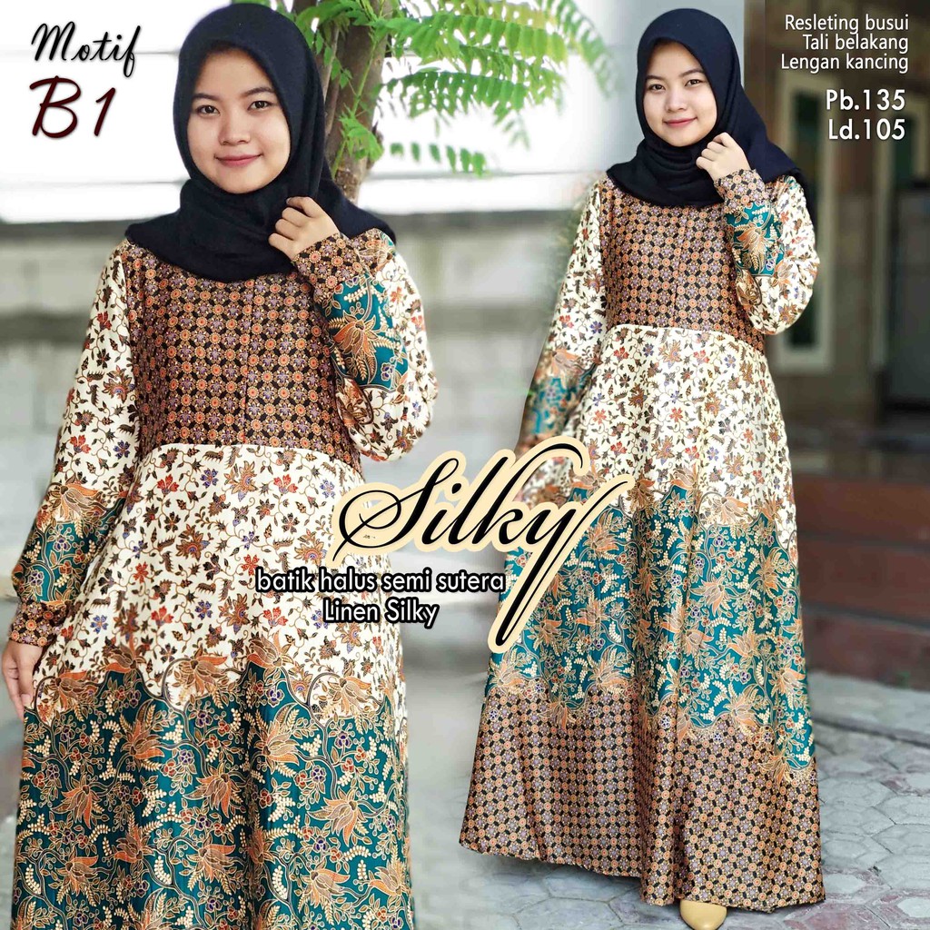 Gamis Silky Batik Mewah Kain Halus Semi Sutera Shopee Indonesia